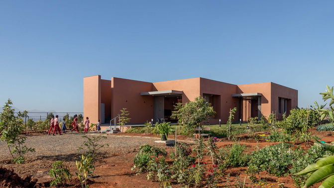 Void House is a farmhouse located within a cluster of farmlands, providing an ideal setting for farming and a peaceful retreat from urban life. The client's main desire was to have ample land for farming while also having a weekend house for their family. To achieve this, the farmhouse was strategically positioned in a diagonally opposite corner from the crossing of roads, allowing for maximum farming space and creating a larger foreground with greater distance from neighboring farmhouses.